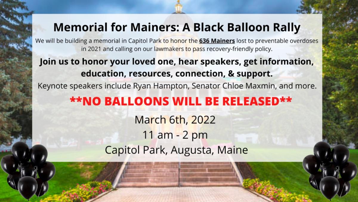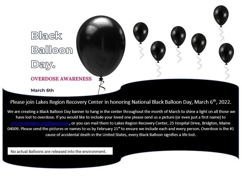 Many communities in Maine are gathering on March 6 in honor of Black Balloon Day. For more information, visit the event pages by clicking on the flyers.