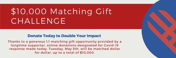 . Your online donation will be matched, dollar for dollar, up to $10,000 thanks to a generous local family.
