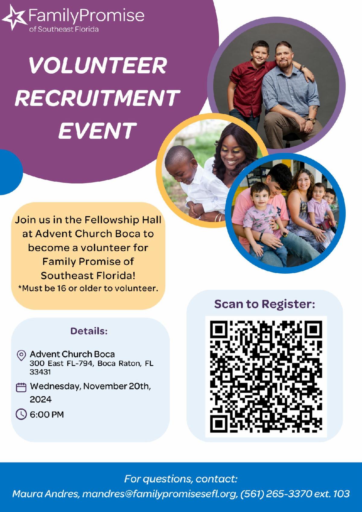 For more information, feel free to contact Jocelyn Bermudez at jbermudez@familypromisesefl.org or (561) 265-3370 ext.102.