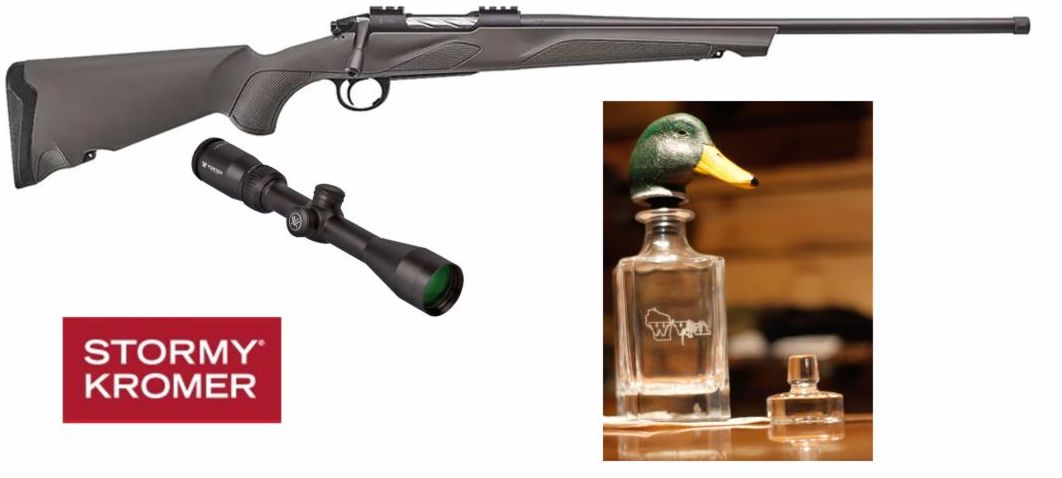 Our November featured Class A (WI residents need not be present to win) raffle is for our Midland Wings chapter who will be raffling off this 3-Prize Raffle: 1st Prize Franchi Momentum Grey Synthetic 6.5 Creedmore with Vortex Scope, 2nd Prize WWA Engraved Decanter w/ Custom Topper and 3rd Prize a Stormy Kromer Hat Certificate on November 12th at Jugs Hitching Post in West Bend. Tickets just $10 each, only 250 will be sold.