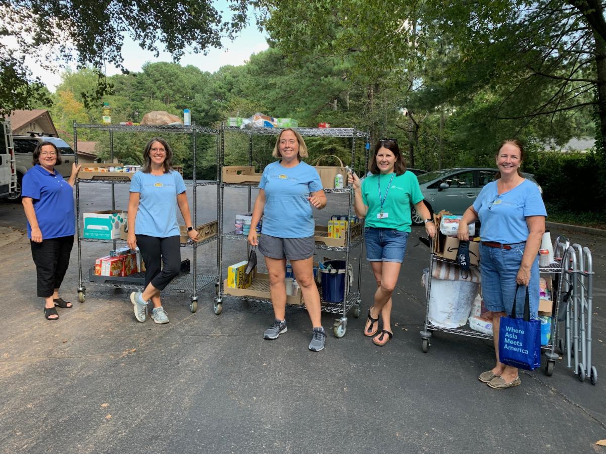 But, there are ways in which we haven’t lost a sense of community. This community includes clients who come by in their cars, clients who walk up after having come by bus or in a taxi, volunteers who come faithfully, week by week, to help this process flow.