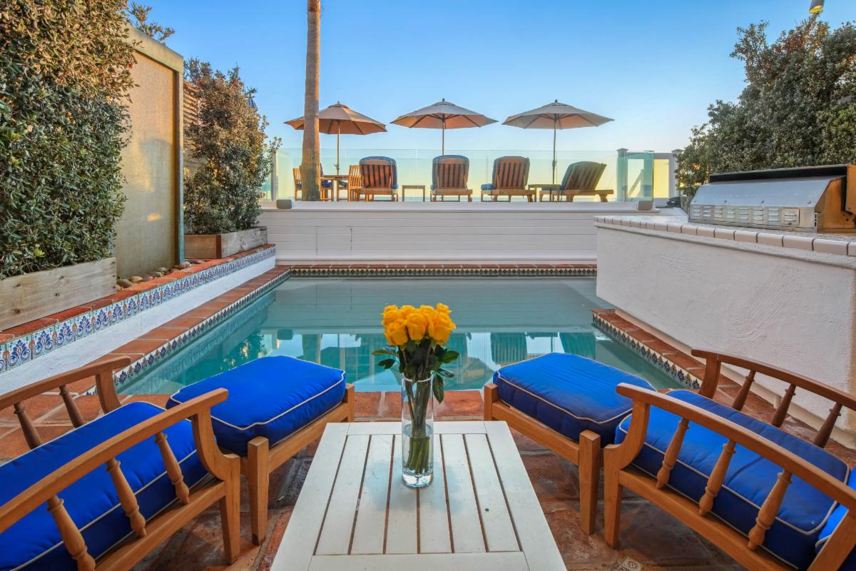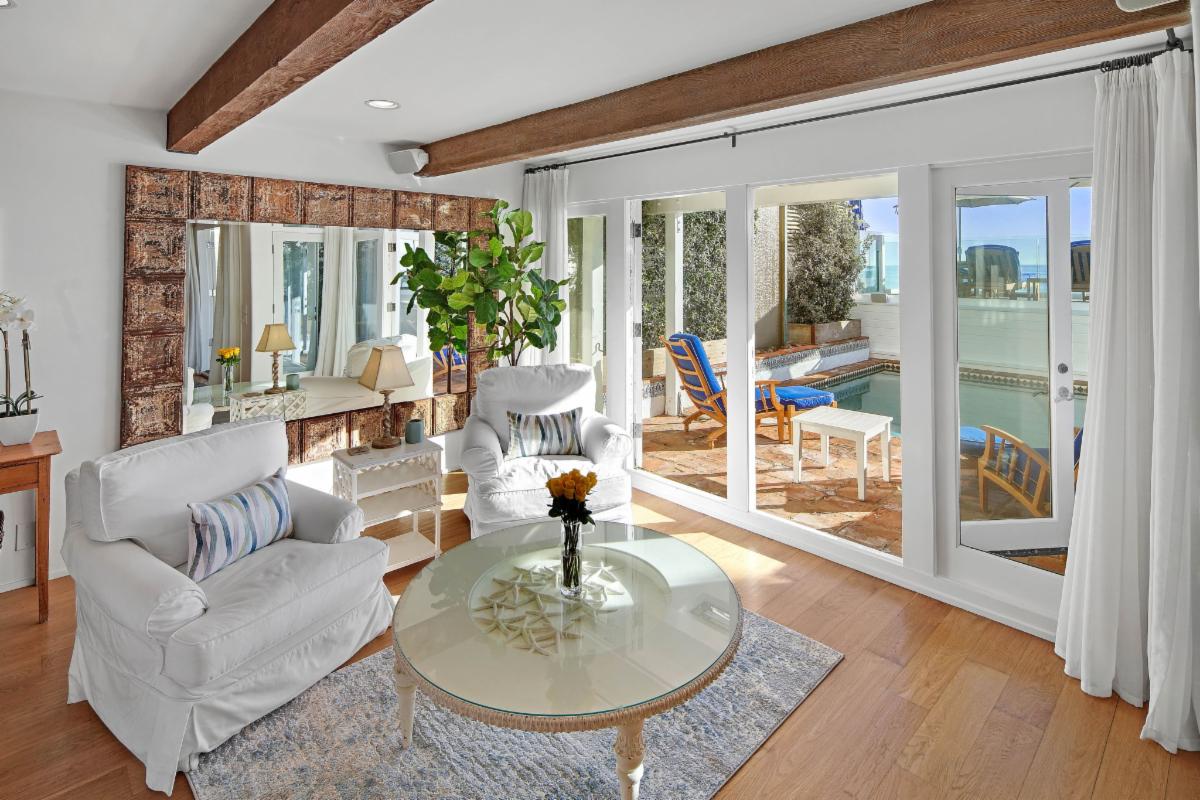 Located in Malibu's premiere gated community of Malibu Colony, on a sandy section of Malibu Colony beach, a rare offering is on the market for the first time in nearly 20 years. With its beachfront pool and shabby chic decor, this charming Cape Cod offers the ultimate Malibu experience. Be it a vacation destination or year-round retreat, this five-bedroom residence provides serene, seaside accommodations that instantly capture your emotions. The open floor plan offers several sitting areas to entertain, dine, relax or watch TV. The charming kitchen allows the home or visiting chef to work their magic in an inviting environment. The generous primary suite pleasantly pampers with its two sitting areas, office area, spectacular ocean views, spacious bath and walk-in closet. Visiting family or guests can enjoy the privacy of separate bedrooms connected by a common sitting area. The large third level guest suite has skylights and impressive space for lounging away from the central entertaining hub of the home. Entertain friends or relax on the spacious, Saltillo-tiled beach front patio, complete with dining and lounging areas or relax inside the Spanish tile accented pool. Experience the ultimate Malibu Colony lifestyle in this Malibu Colony gem. |