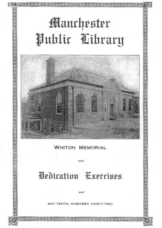 The Whiton Memorial Library was dedicated May 10, 1932 -- see the program by clicking