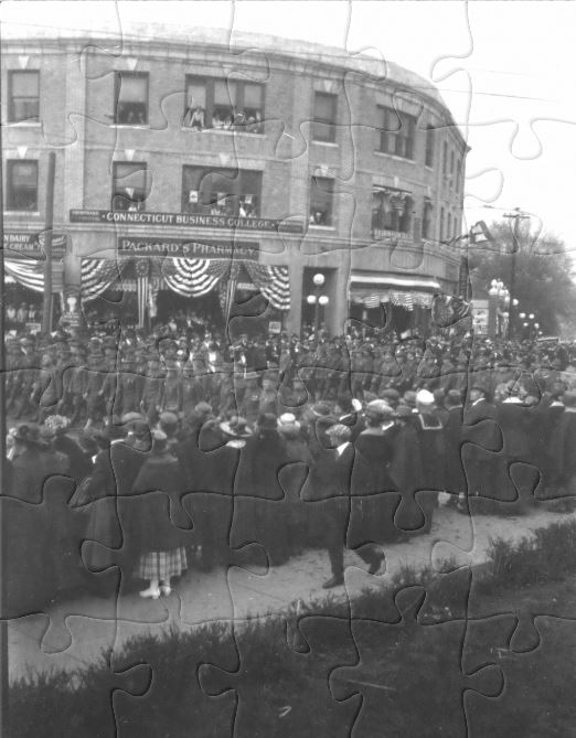 , 1923 centennial-year parade in front of the former Odd Fellows building at the corner of Main and Center Streets. It's also a