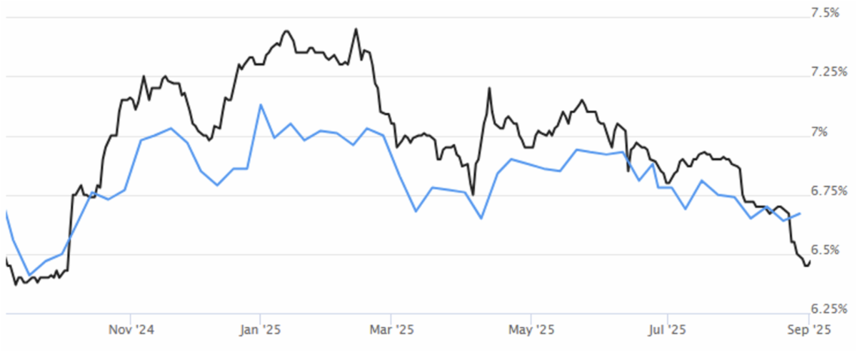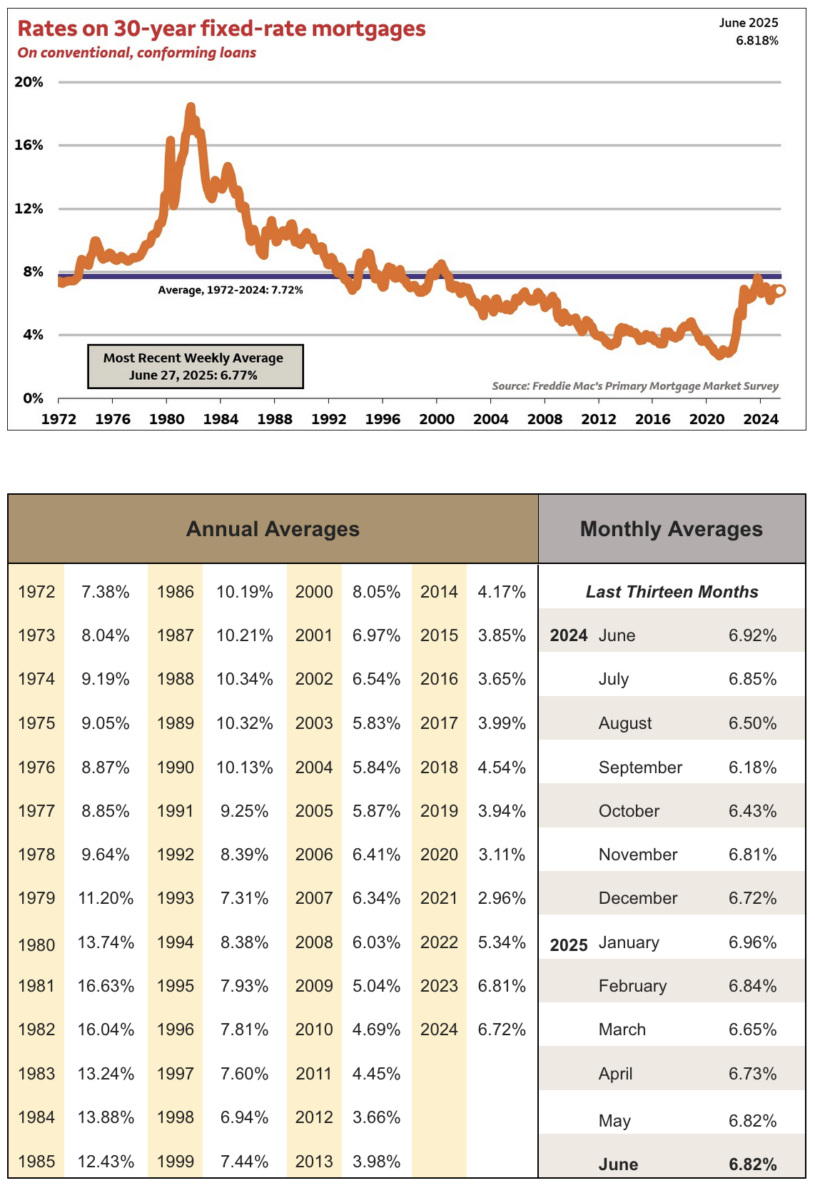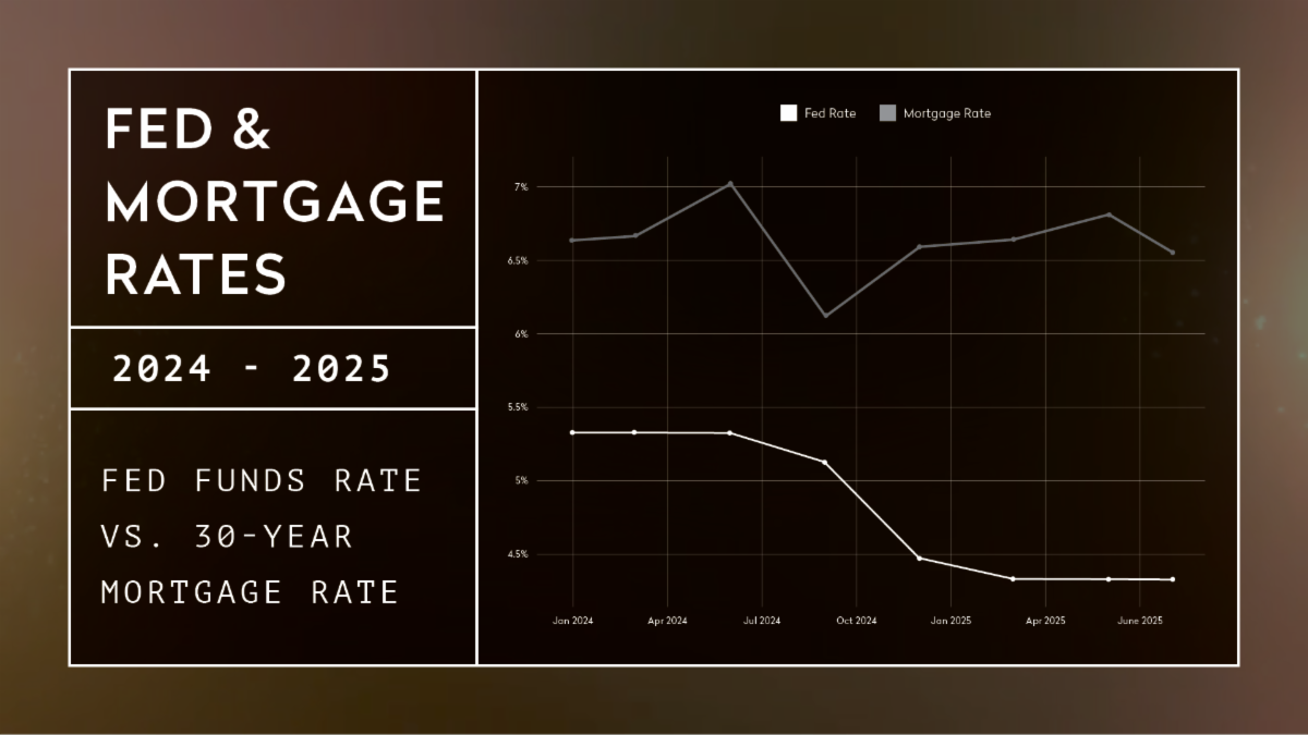 | | Fed Funds Rate vs. 30-Year Mortgage Rate (2024-2025, Monthly) | | Yes, it was counter-intuitive; but with inflation still “hot” the markets took over, feeling that the cuts were unjustified and, as mentioned, compensated by letting the long term rates rise. Typically, when the economy is under less pressure, without tariff risks and potential inflation, the curves would run more in tandem. The marketplace is like a wave (not controllable); policy is merely a strategy to surf that wave and how best to manage it. Although rates have indeed eased since early 2024 (see chart), the public conflict now regarding the direction rates should take is between the Trump administration and The Fed. One economist called this “monetary stability vs. fiscal convenience.” | |