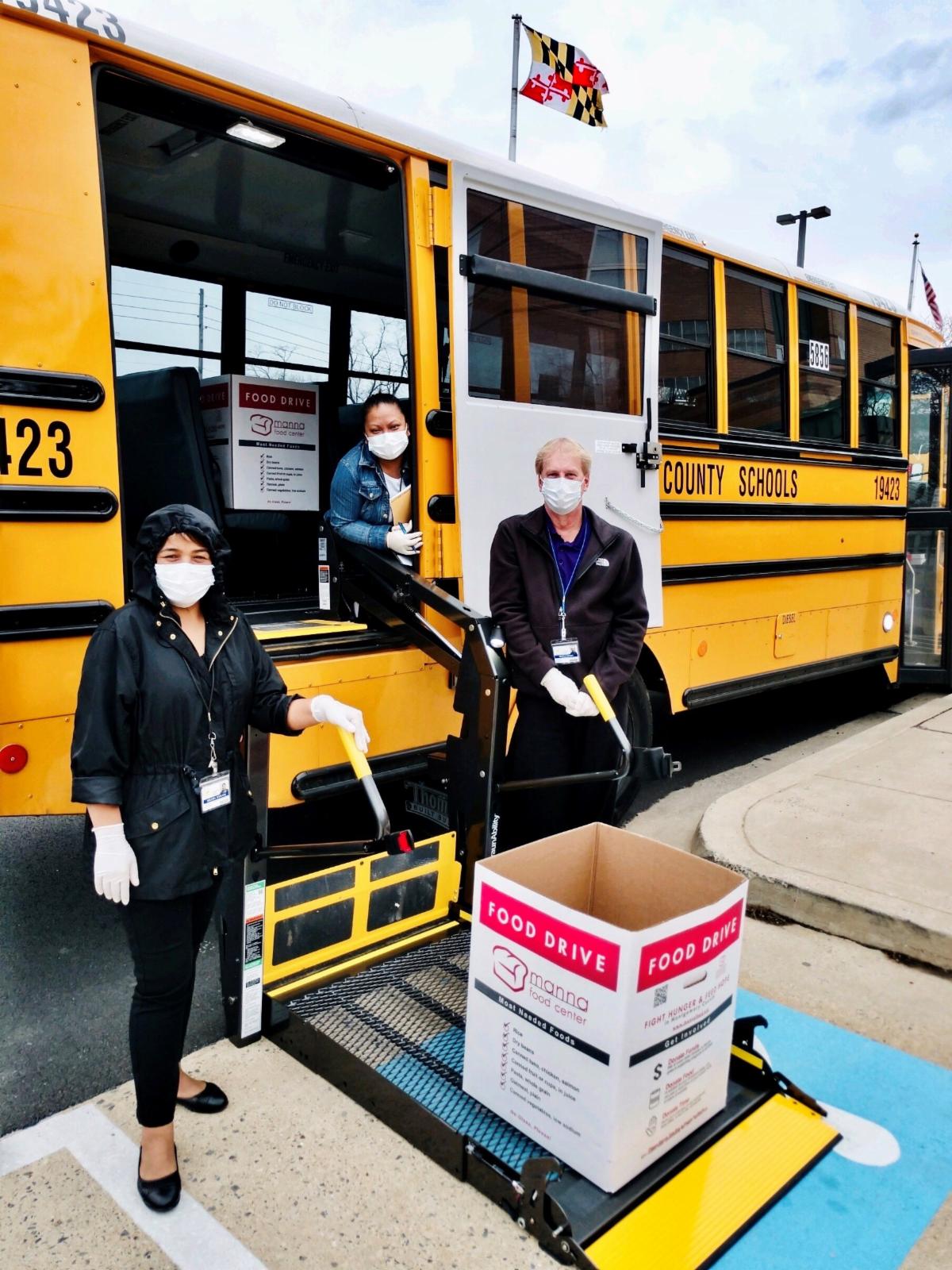 We are launching new strategies to keep feeding kids who are out of school, in partnership with Montgomery County Public Schools at their "grab and go" feeding sites and MCPS DOT for bus distribution (photographed here).