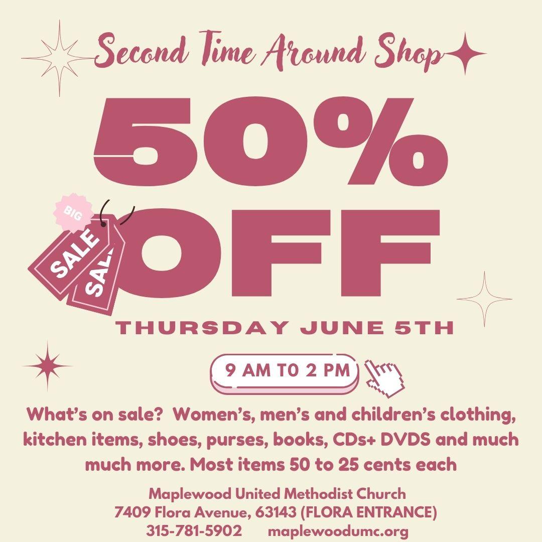 9:00 a.m.- 2:00 p.m. Second Time Around Shop - 50% off Sale