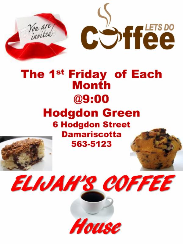 | ElderCare Network of Lincoln County Invites You to Elijah's Coffee House Join them the first Friday each month from 9:00 am to 11:00 am at Hodgdon Green (6 Hodgdon St. in Damariscotta) for coffee and company plus a stunning variety of morning treats! They invite the community to come in and see who they are and what they're up to. Come in with a friend and enjoy complimentary coffee, Elijah's special coffeecake, Hodgdon Green residents, staff, friends and neighbors in the Hodgdon Green dining room. Sometimes they have live music to share or folks visiting from their past or from out of town. You never know who you'll see at the coffeehouse! Come on in for warmth, company and a chance to catch up on community news. They look forward to seeing you at ELIJAH'S COFFEEHOUSE! |