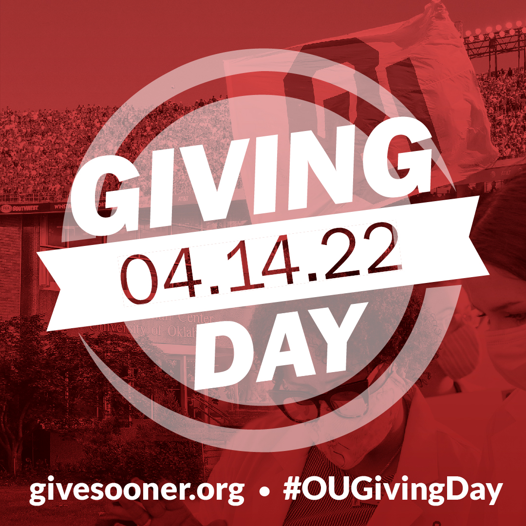 Save the date for April 14 and join the OU community for a 24-hour celebration of Sooner Spirit. This fundraising event honors the generosity of the OU community and raises awareness of the impact of giving and giving back. It brings together the entire OU family – faculty, staff, students, retirees, alumni, corporations, foundations and friends – to ensure our university lives on for generations to come. Learn more at givesooner.org.