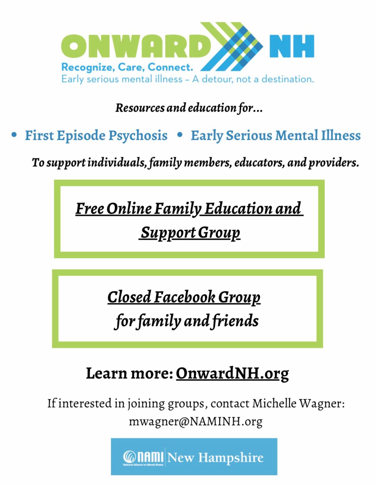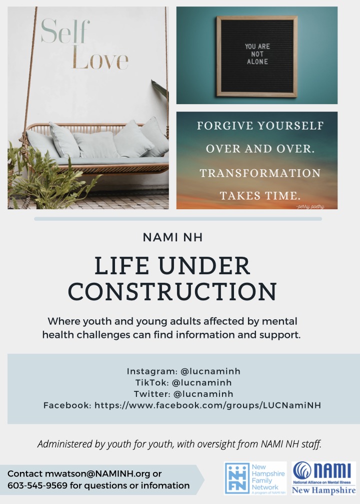 To connect with resources & support, contact NAMI NH's Info & Resource Line at info@NAMINH.org or 1-800-242-6264 (press 4).