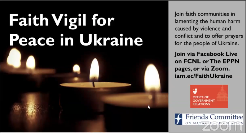 The Episcopal Church with the Friends Committee on National Legislation hosted a vigil to pray for the people of Ukraine and lament the violence caused by war and conflict. We invite you to watch and pray with us and leaders from various faith traditions including Presiding Bishop Michael Curry. Watch the vigil here.