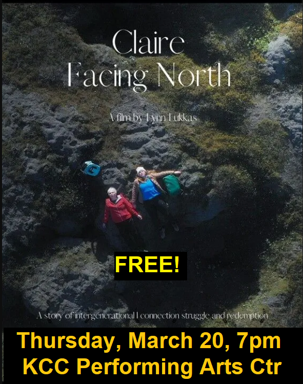 The KCC Performing Arts Center, in celebration of Women's History Month, presents CLAIRE FACING NORTH, Thursday, March 20, 7 p.m.