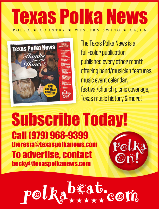 We would like to introduce everyone to our new advertising director, Kim Macik Jobb. Kim is a regular at polka dances, so many of you already know her. Reach her via email at kim@texaspolkanews.com.