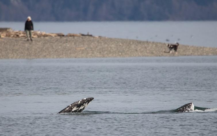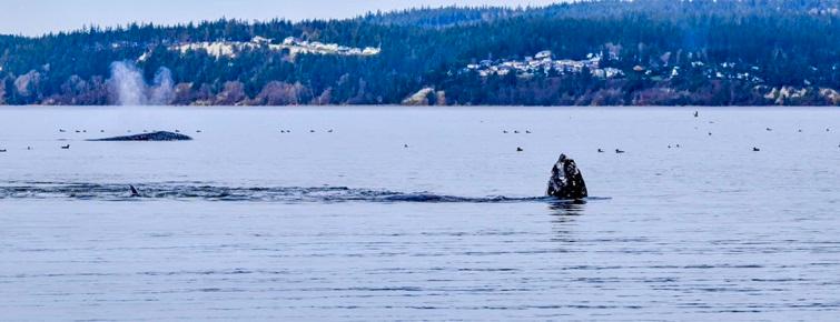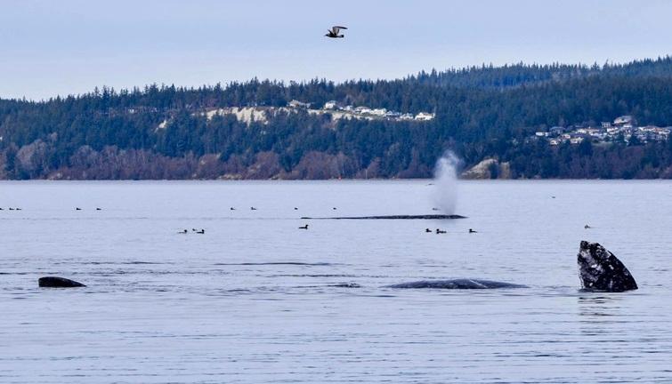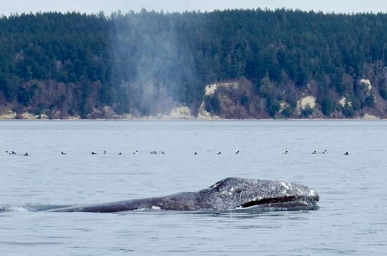 15:20 - At least one gray feeding off of Hidden Beach… very close to Whidbey shore - milling about.