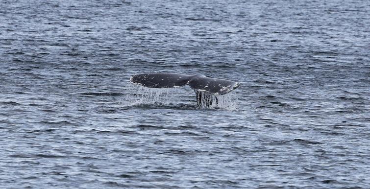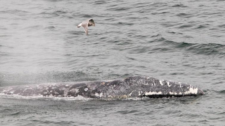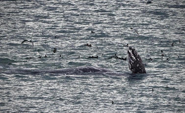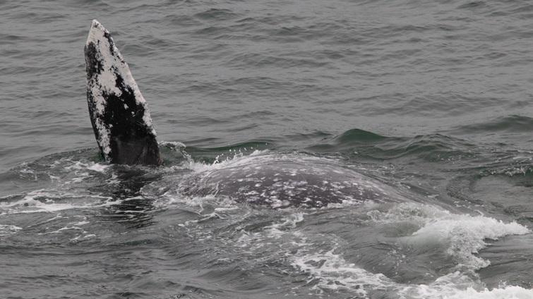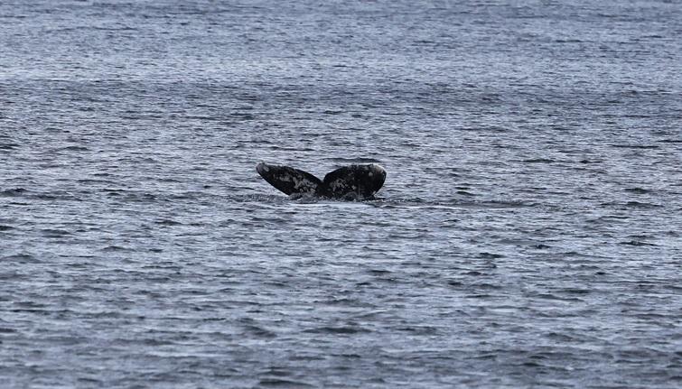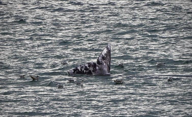 13:48 - Grey off Hidden Beach. Feeding, milling headed slowly northwest.