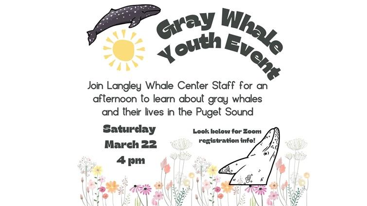 This month of our youth event, we are diving into the world of our neighborhood gray whales. From their migration patterns to their favorite food in the Puget Sound, we will learn all about these friendly giants!