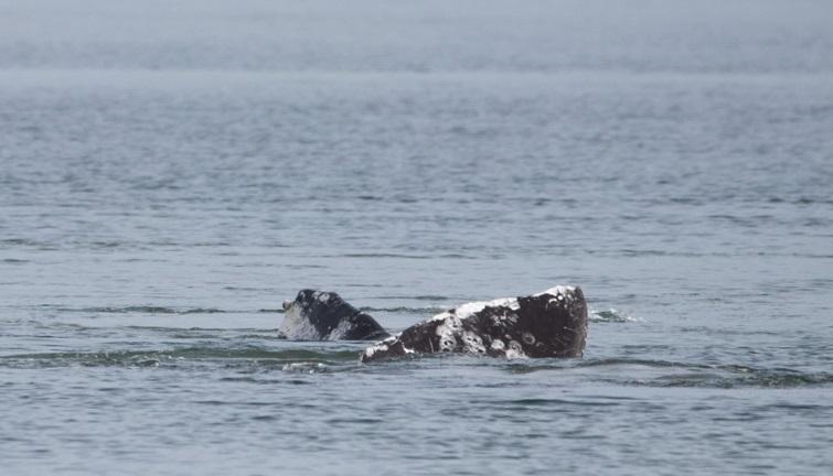 08:50 - On this Tuesday morning one gray whale is in the cove on the east side of Polnell Point and the second gray whale is located about 1/2 mile east of Polnell Point. Directions unclear.