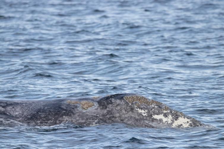 13:43 - One or 2 gray whales directly off Hidden Beach, feeding.