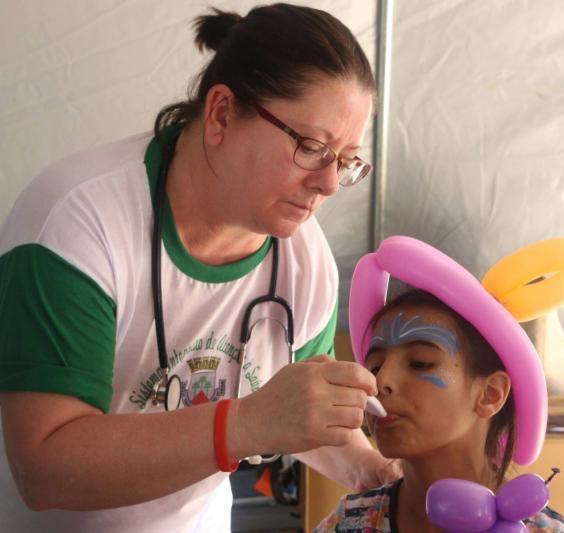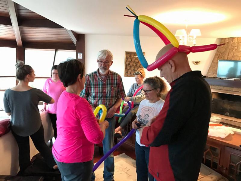 Above Left: Team practicing face painting on Sophia Above Right: Team practicing balloon art