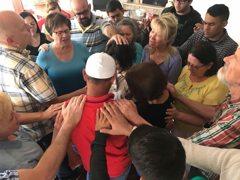 Above Photo: Bandeira, his wife and daughter came to the base on Sunday morning to share with the team about the impact of what God had done through the mission's team in the Monte Carlo neighborhood and the ripple effect that the soccer field renovation project has had both the neighborhood and city.