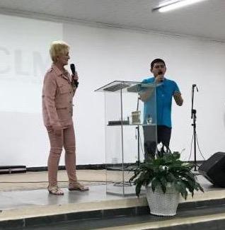 Above Photo: Pastor David Frech preaching and Débora Borchardt interpreting