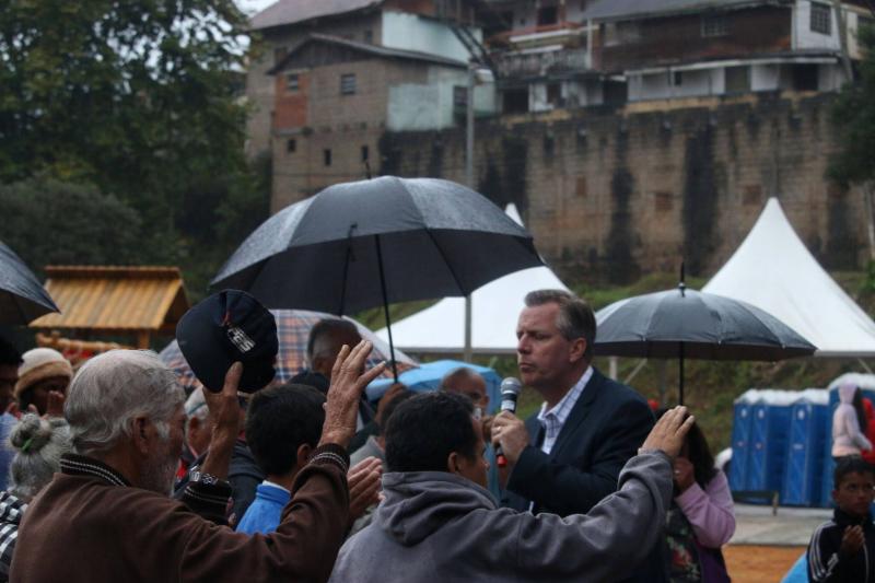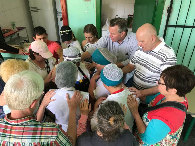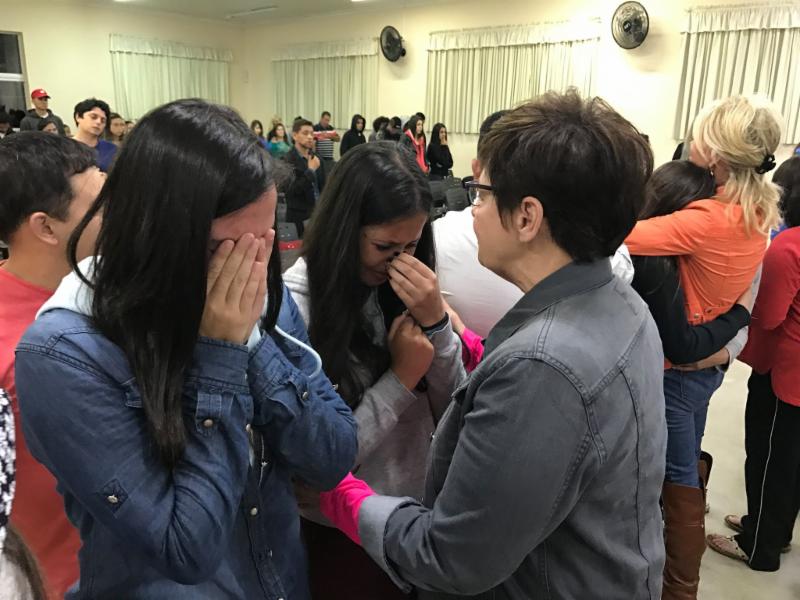 We had been told that the city's pastors had not gathered in over 4 years and that there was a lot of disunity and mistrust between pastors and churches. As an unknown outsider it would take a miracle of God to assemble the city's pastors. A month prior to the team's arrival we sent out flyers to invite pastors for a simple "meet and greet" at the city's chambers (neutral ground). 19 pastors came and we considered this a ground breaking breakthrough. From this event, we invited the pastors and began to publicize the pastor's service called "Leaders on Fire" that took place this first night of the Mission's Week. Over 100 came and we consider this another miracle and a breakthrough for the church community in Campos do Jordāo. Pastor David Frech preached an awesome message that connected with the pastors and church leaders at the service. The mission's team prayed for the many that came down to the front for prayer.