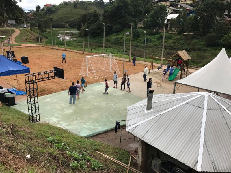Previously the field was mud and there was no place or infrastructure for families to congregate.