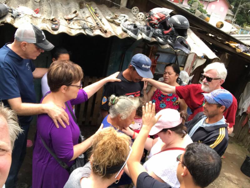 Photo's Above: Prayer for families in their homes in the Monte Carlo Neighborhood