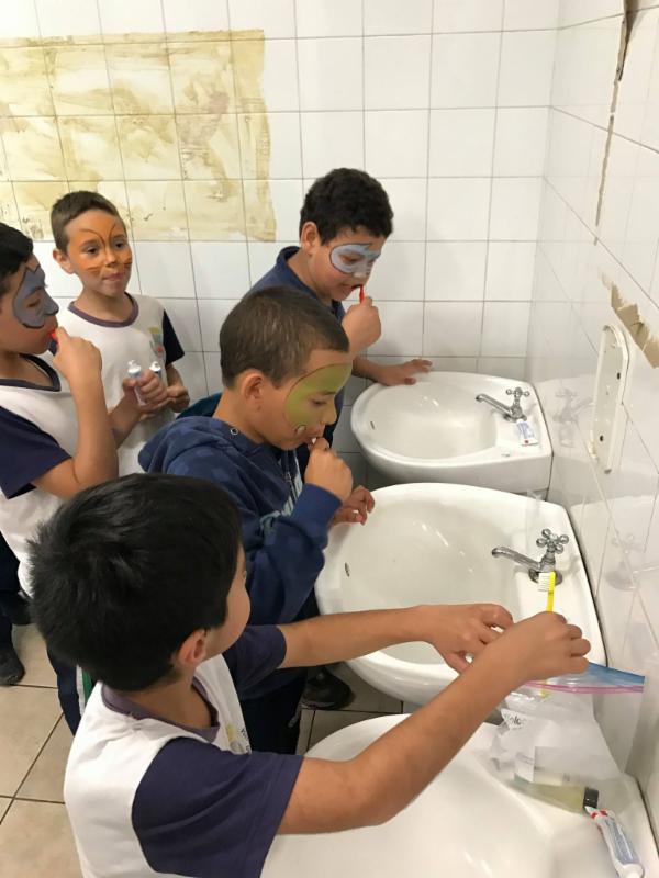 Photo: The kid's couldn't wait to open their hygiene kit and brush their teeth.