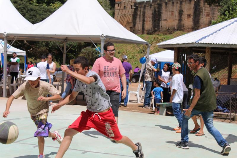 Photo: The kids using the new basketball area