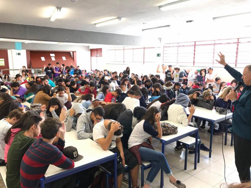 Photo Above: After an amazing week of ministry, it's the final day. Originally we had scheduled time in São Paulo to tour the big city before going to the airport. As a result of the High School Assembly on Thursday, the principal asked the team to come back before we headed out of town. He wanted to gather the students that were not part of Thursday's assembly. I