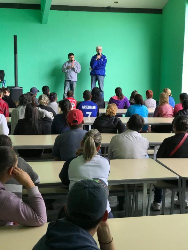We needed another MIRACLE on this morning. After some time waiting, he agreed to let us in. He gave us 15 minutes to visit a few classes in progress and say a quick hello. We quickly agreed believing God would open more doors. We split the team in two groups and we each got to visit two classrooms. Afterwards, the principal's heart softened and he wanted us now to speak to a group of kids that he was going to assemble in the lunch room. He gave us one hour to speak to the kids.