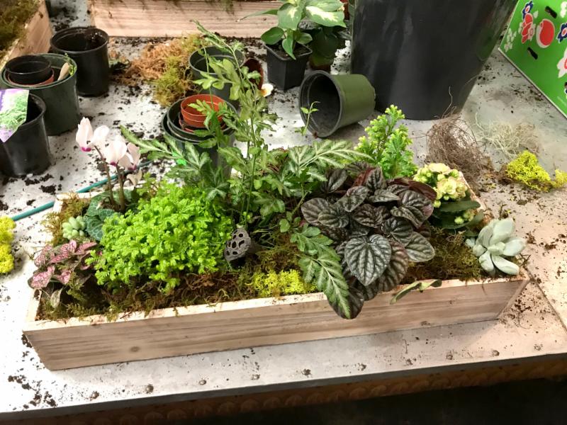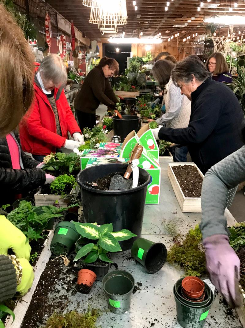 Members gathered for a workshop in February at Copia Home and Garden and created a living woodland centerpiece. Member and Copia owner Jenn Cipriano, guided us as we picked live plants, dried pods, and decorations to create a