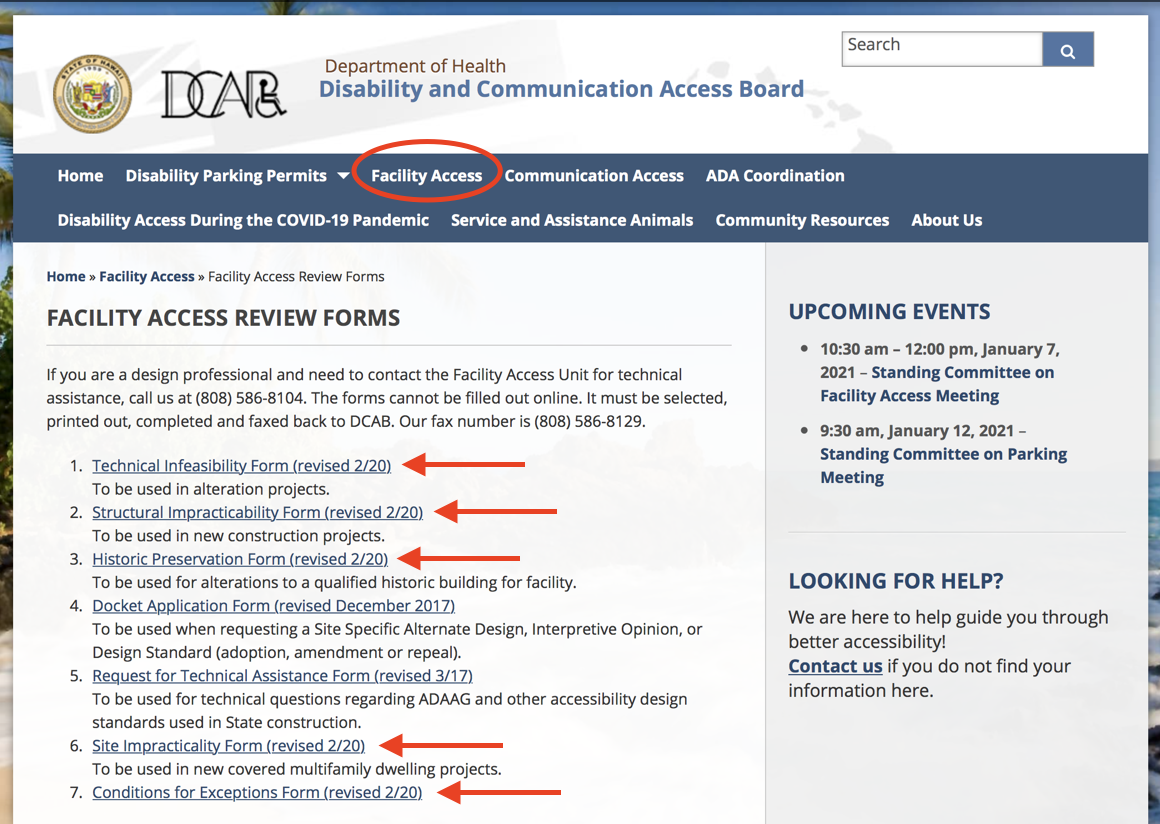 Did you know that DCAB revised their Facility Access Review Forms last February 2020? Please use the updated forms listed below when submitting projects to DCAB's online plan submission website. The forms are posted on DCAB's website, select the "Facility Access/Facility Access Review Forms" and select one of the forms noted below.