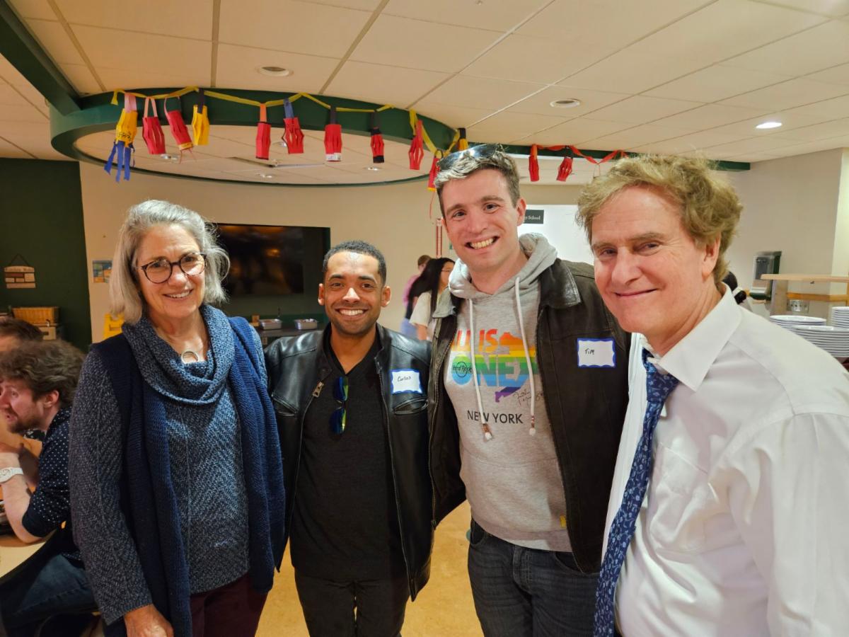 Karin Bleeg '01's daughter, Aviva! | Mac Inglis '07 stopped in for a tour and was able to see John Dolan (Psychology, 1994-present). | Lisa Osborne Lange '74 P '09 (Graphic Designer, 2007-present), Tim Crumley '09 with his husband, Carlos, and John Dolan (Psychology, 1994-present). | |