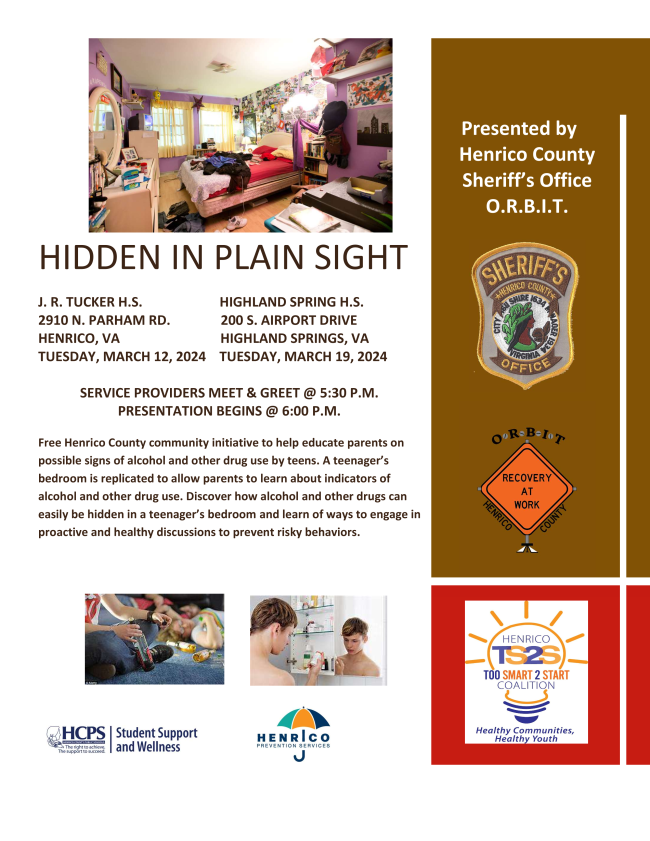 Henrico Area Mental Health & Developmental Services, Prevention Services | 3908 Nine Mile Rd. Richmond, VA 23223| 804-727-8097 | henricoprevention@henrico.us |