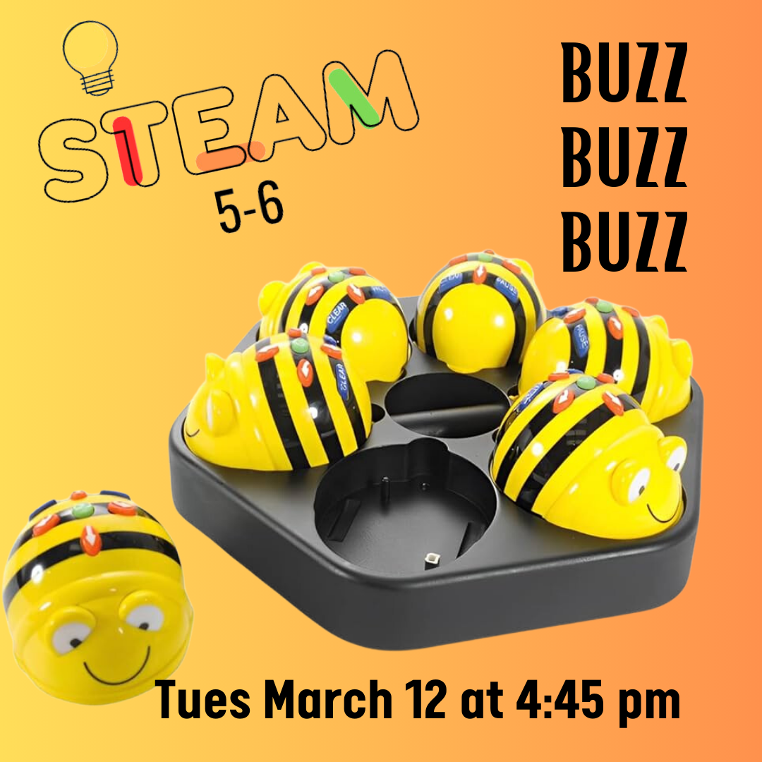 Buzz, Buzz, Buzz! Join us for BeeBots. If time allows, there will be a short introduction to Cubelets and free play.