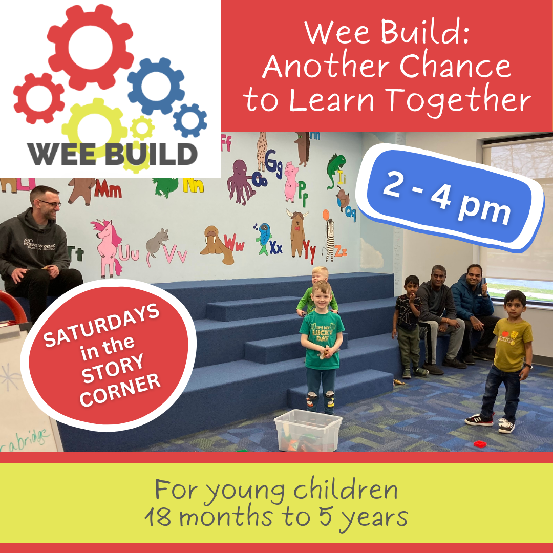 Stop by the Story Corner every Saturday where children 18 months to 5 years (with their adults) can build and experiment, manipulate objects, count and measure, talk about what they are building, and build their vocabulary.