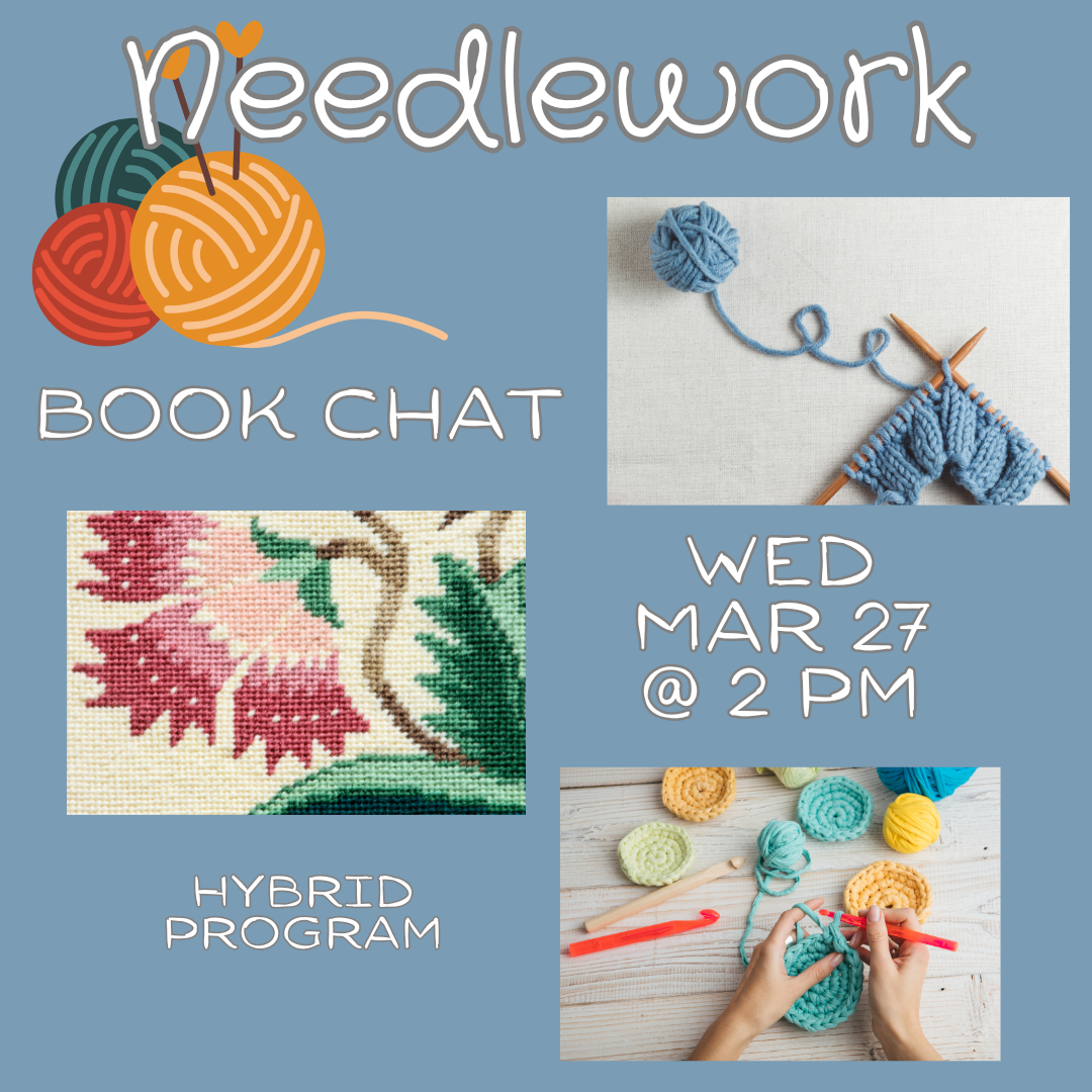 Hybrid Crochet One, Knit Too - Wednesdays, Mar 13 and Mar 27 at 6 pm. Make progress on your needlework project. Share time with others who enjoy the art of creating. Follow above links to register.