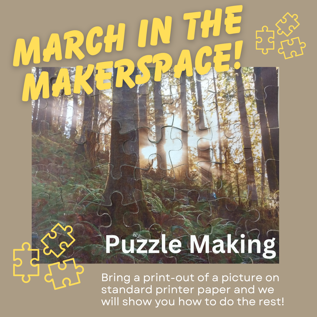 During the month of March, bring a print-out of a picture on standard printer paper and we will show you how to make a puzzle!