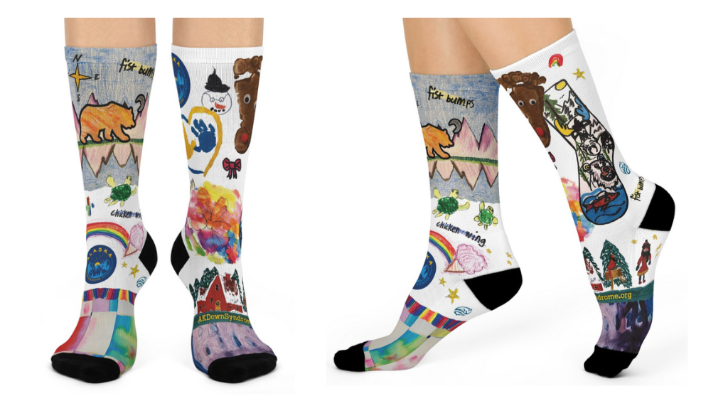 The Alaska Down Syndrome Network has partnered with True North Federal Credit Union to design socks from artwork created by our Alaskan DS community. The socks are then sold as a fundraising event to raise money for items such as scholarships we provide our DS members, social events, and educational opportunities for our network and our community. Purchase your socks today!! You can opt to have the socks shipped to you or meet with your area representative to pick up your sock.