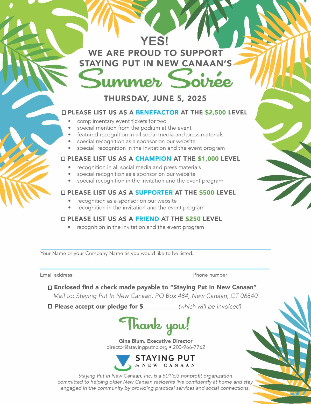 If you would like to be an event sponsor, please return the form below or call the office at 203-966-7762.