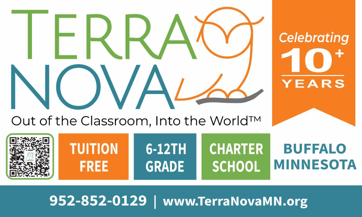 Terra Nova is a tuition-free Charter School in Buffalo, MN for students in grades 6-12. The Terra Nova community facilitates authentic learning through diverse experiences while building life(long) skills. We promote autonomy for all and value innovation. We ignite curiosity, passions, and advocate for environmental stewardship.