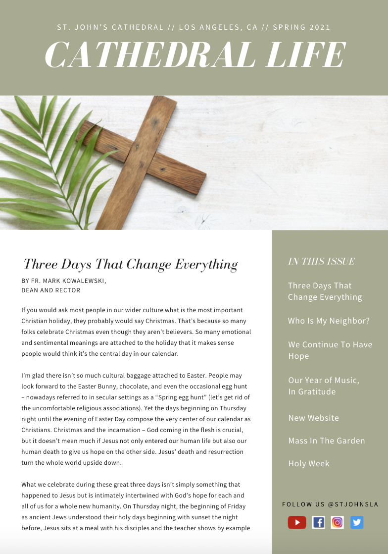 As we enter this Passiontide, we know that the darkness of human hearts still needs the power of Christ's redeeming love and transformation. In recent times we have seen this darkness rise up in attacks on African Americans, through systemic racism, in anti-immigrant attacks, and now in the rise of anti-Asian attacks. Let us once more pray from the wisdom of the Book of Common Prayer: