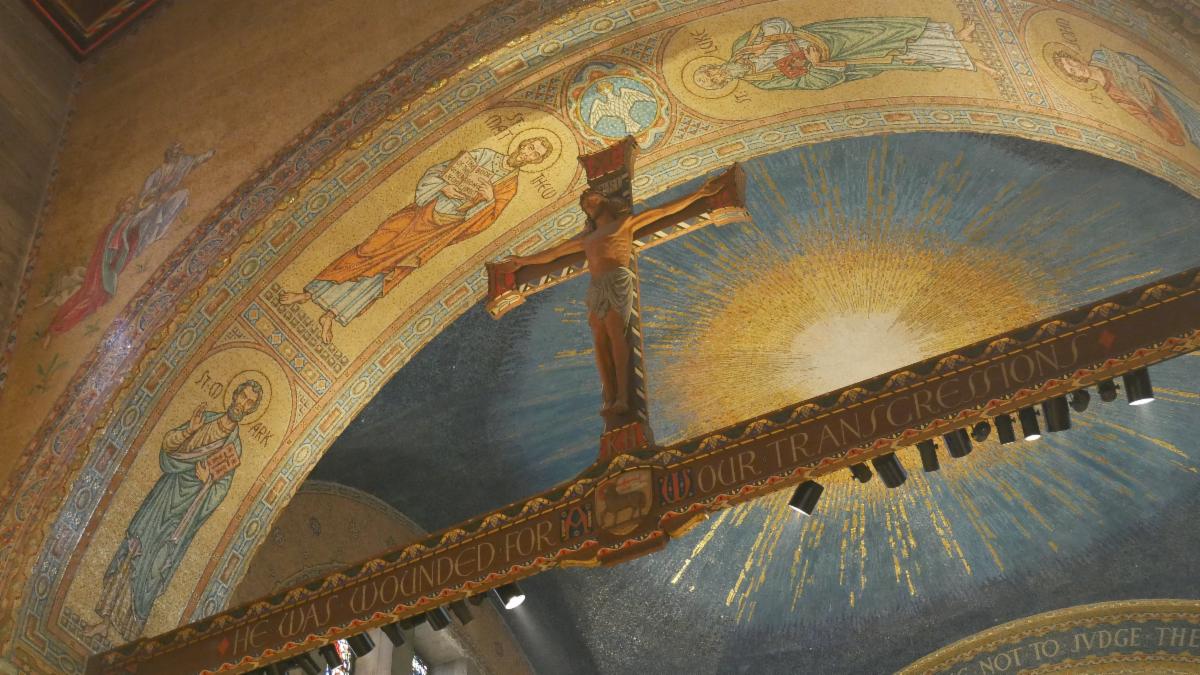 Jesus gives us the sacrament of his Body and Blood and teaches us about serving one another so that we have a physical sacramental sign of our connection to each other, to him, and the promise of the future new creation. We enter the mystery of the cross knowing the offering of his life opens the path to new life for us as he conquers the power of death. The cross is connected to our own death and to the font of Baptism where we enter into a new life with him through the resurrection.