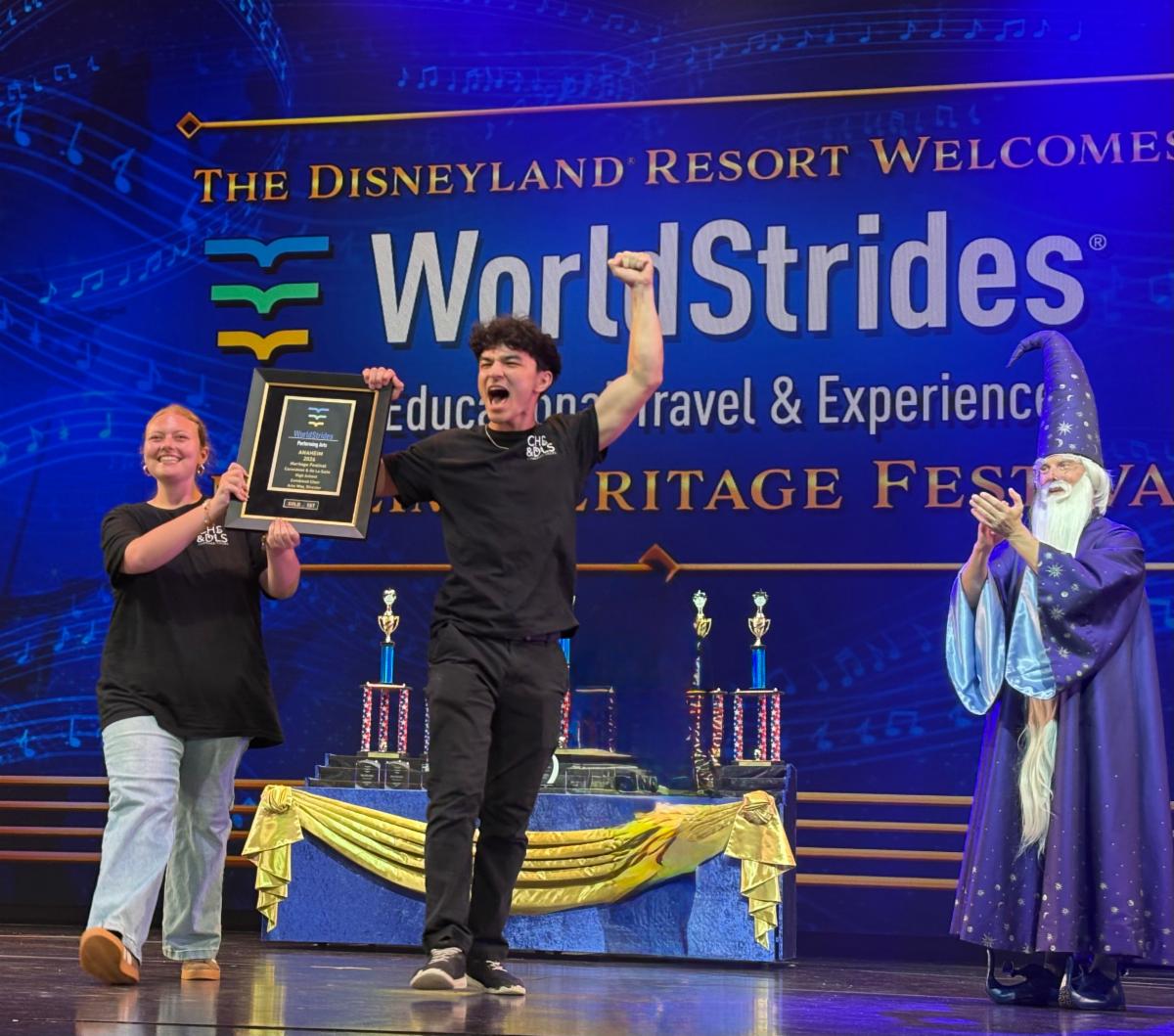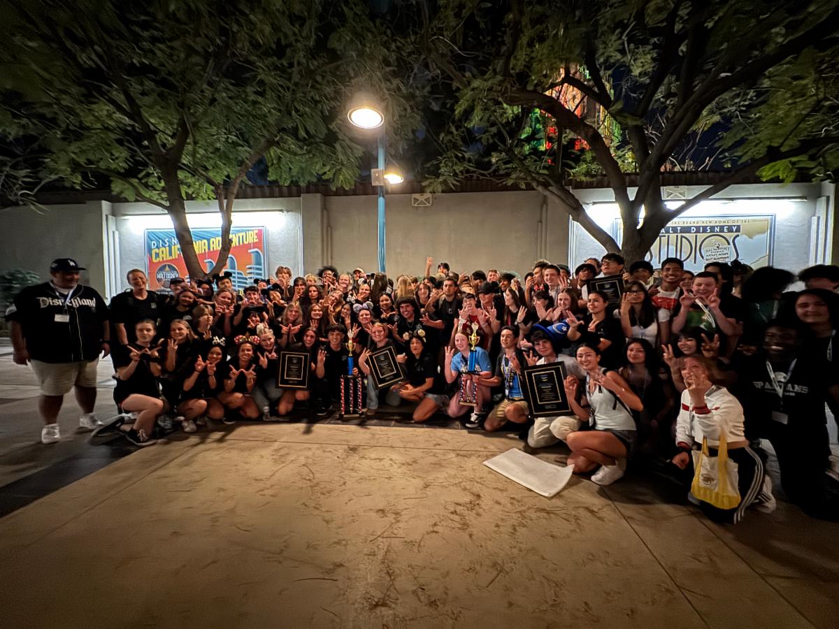 They also swept the competition and took home the BIG award: the Festival Sweepstakes! This award honors the top overall music program (the highest recognition presented at the festival) and is given to the school with the highest combined scores across multiple ensembles. Directors Amy Way and Larry Colón took to the stage to receive the trophy while Mickey and Minnie danced, and confetti showered the stage!