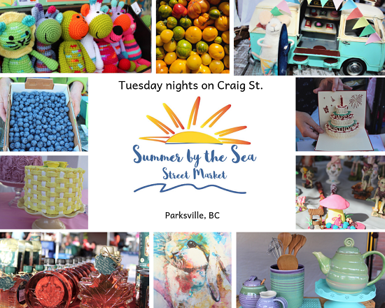 The Summer by the Sea Street Market is an economic benefit to the community. It helps to increase the number of visitors to Parksville's downtown and is a great weekday event for those visiting the area. Come down and enjoy the Tuesday evening market while supporting local businesses, artisans and food producers!