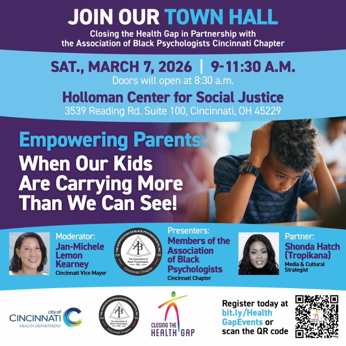 Tomorrow, we invite parents and caregivers to join us for an important community conversation: "Empowering Parents: When Our Kids Are Carrying More Than We Can See!" from 9–11:30 a.m. (doors open at 8:30 a.m.) at the Holloman Center for Social Justice (3539 Reading Rd., Suite 100). This gathering is designed as a safe, supportive space for parents and caregivers of youth ages 10–18 to share, learn, and strengthen the support systems our young people need.