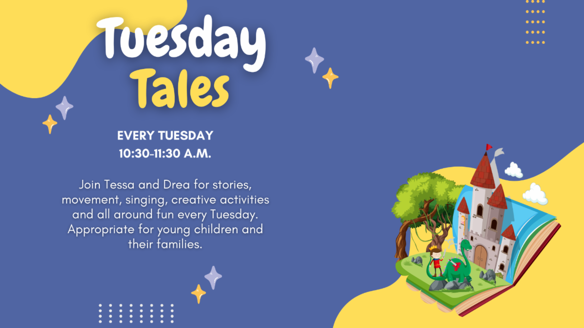 Join Tessa and Drea for stories, singing, and creative activities every Tuesday. Suitable for young children and families. Caregiver involvement is encouraged to promote bonding and learning.