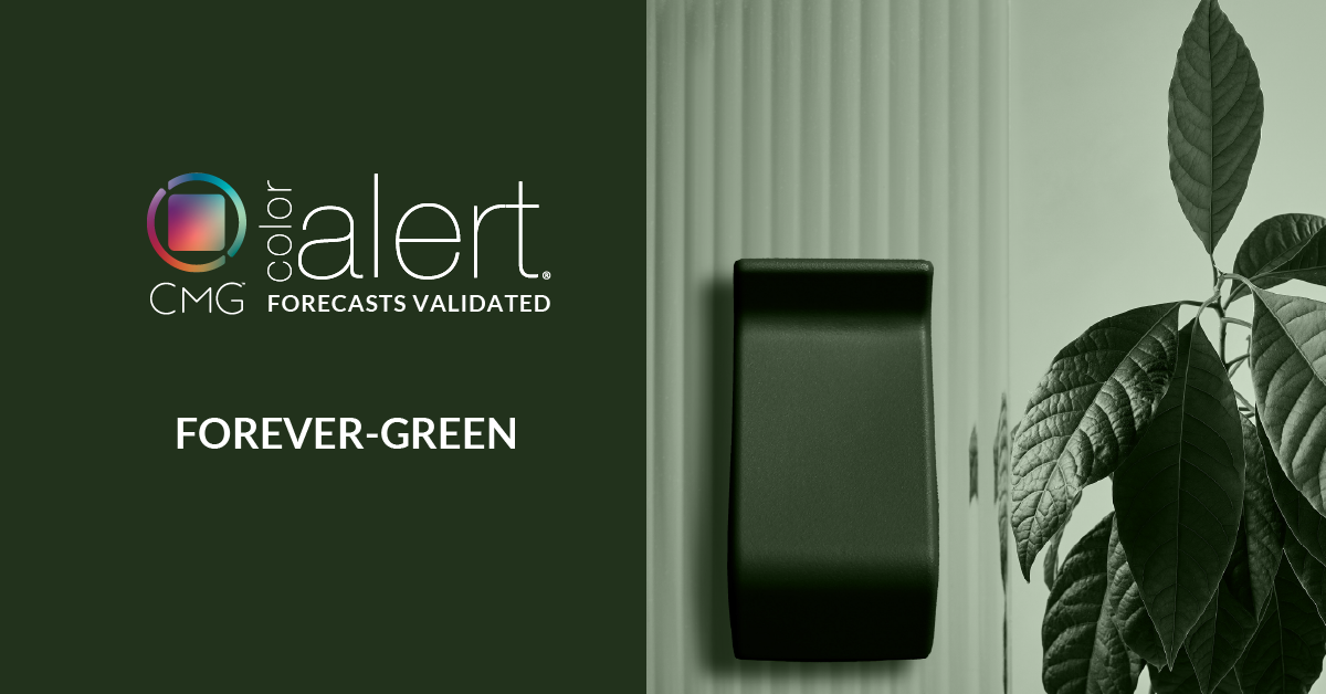 Forever-Green, the CMG North America's Main Key color for 2025, was predicted two years ago for its emergence as a hue that promotes harmony and balance from a place of eternal strength. Representing life at its most captivating and intense, it takes its broad influences from the deep forest as well as mineral deposits. The color is one of nature at it most rich and enduring.